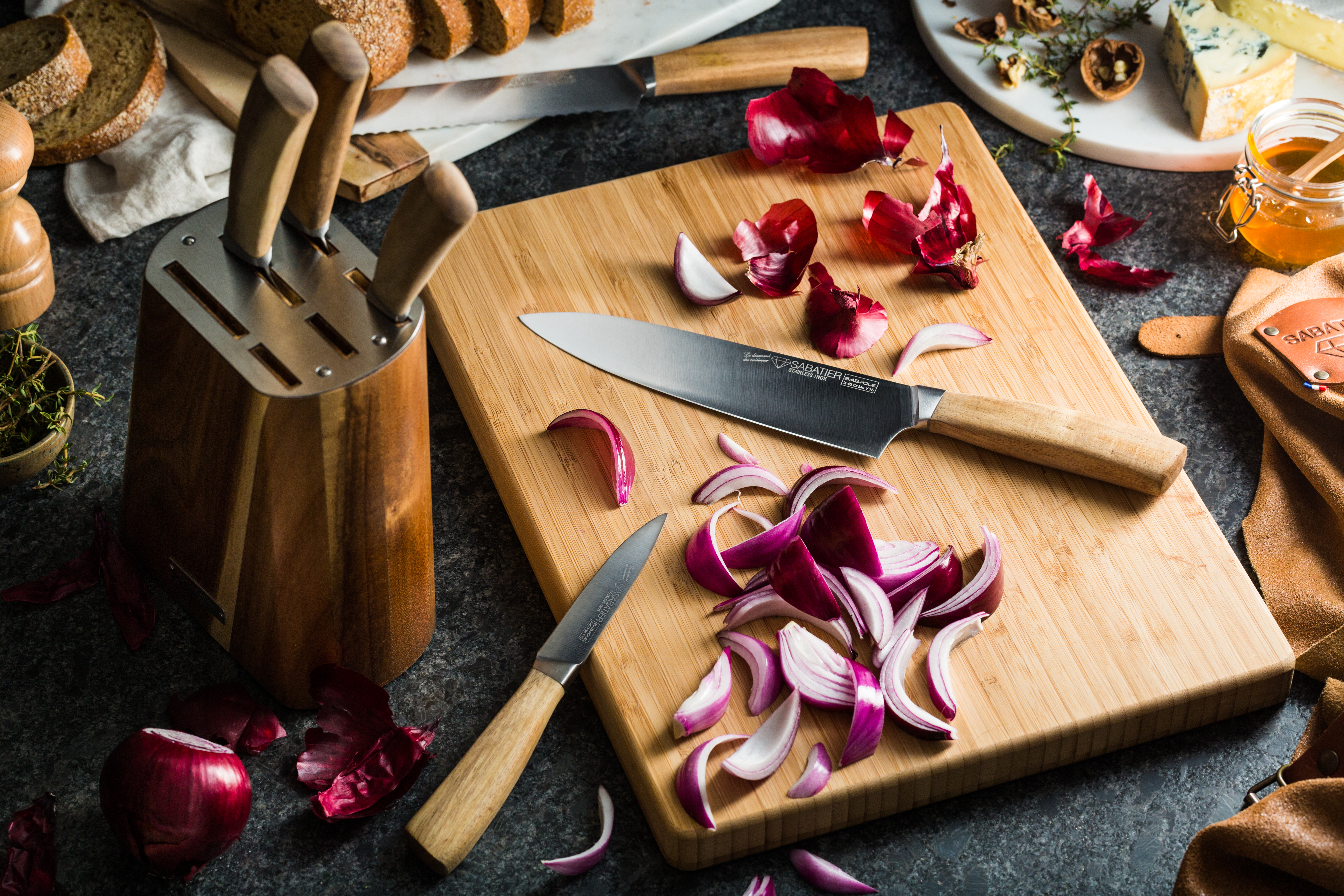- De combinatie van klein en groot koksmes geeft maximale controle.
